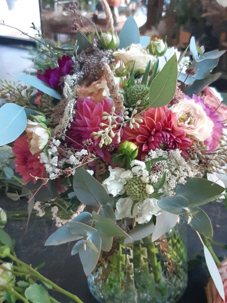 Ich bin hier wann immer ich Zeit finde und tue was ich liebe - Sträusse binden, Blumen & Gräser trocknen und pressen, Kränze winden, Wurzeln & Zweige ineinander weben, Holz, Stoff, Papier und gesammelte Schätze verarbeiten.